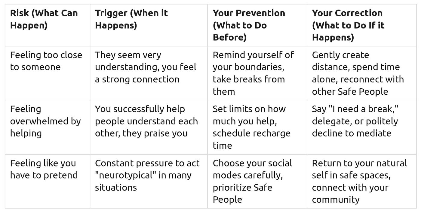 Our goal is to provide you with a Social Safety Toolkit — a set of reliable strategies and clear explanations to help you feel more secure and confident in neurotypical (NT) environments. We will focus on protective scaffolding, emotional safety protocols, and simplified, high-reliability social scripts. This approach aims to reduce the frequency of social “shocks,” prevent discouragement, and build a sense of predictability in your interactions. Think of these protocols as your personal social armor, designed to protect your emotional well-being while navigating the social world.