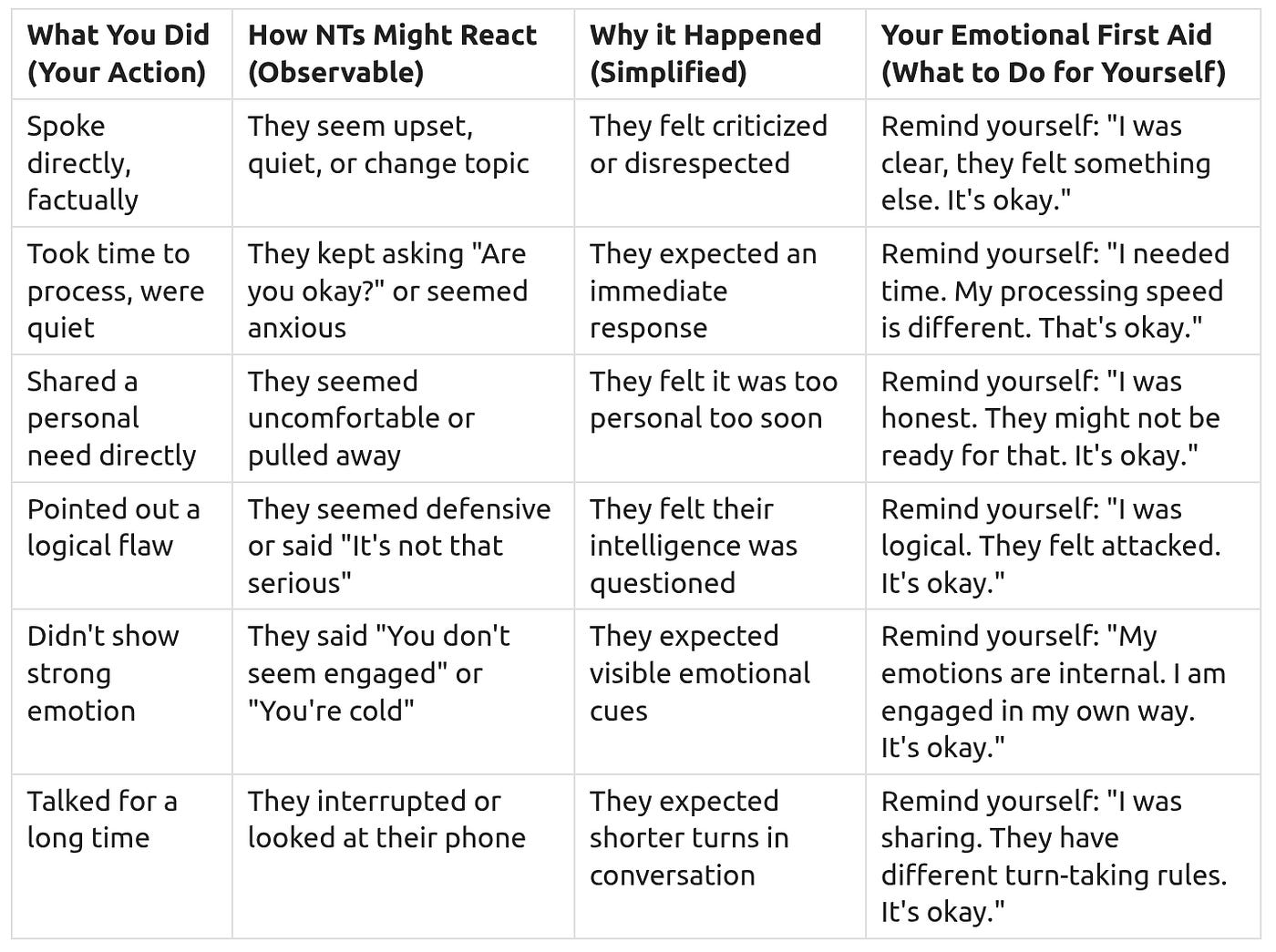 Sometimes, despite your best efforts, social interactions can still go wrong. You might feel confused, hurt, or blindsided. This isn’t a failure on your part; it’s a misunderstanding between different communication styles. This section helps you understand common misunderstandings and gives you tools for emotional first aid.
