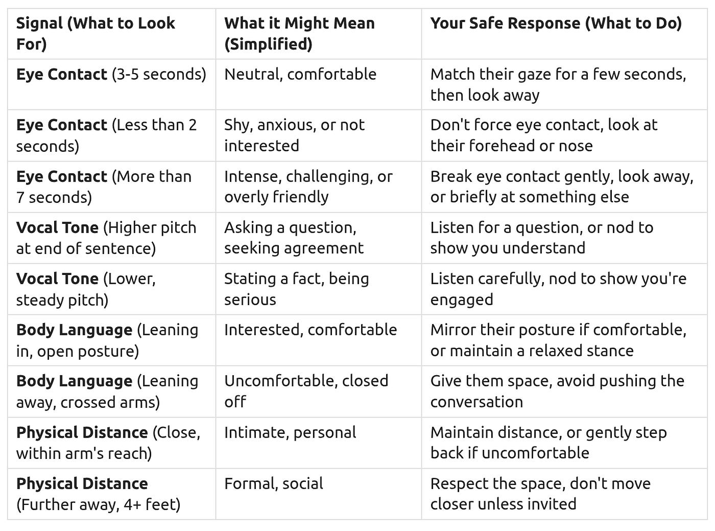 Key Social Signals (Observable NT Behaviors and Your Safe Responses)